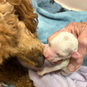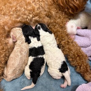 FARAH and MOOKI are both DNA clear and OFA Certified Puppies born Feb 17, 2026. We have 2 girls and 3 boys. Apricots, Blk/Wht, and 1 girl that is white w/Apricot spot on her head. Better pics in a couple days