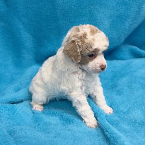 This is Landon, 6 wks old, born 2/17/26 he is Personality Plus! Wants your attention, Loves everyone, super friendly, playful yet will cuddle in your arms. He is still a pup, he will have some leg like his paretns!! Mature around 10 lbs, pre-paid Microchipped, AKC, vet check on 4/7/26, you will get a hard copy of this report.