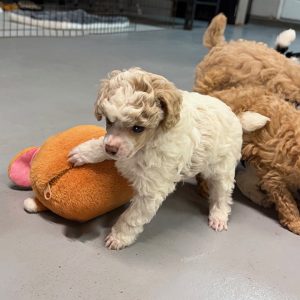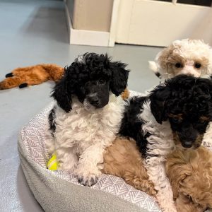 Pure Bred AKC Parti color, Red, Apricot and Black Toy and small Mini Poodles. All my poodles are pure bred (100% poodle), AKC Reg. Micro-chipped, UTD on worming and shots and come with a “Licker License”! Updated April 17, 2026